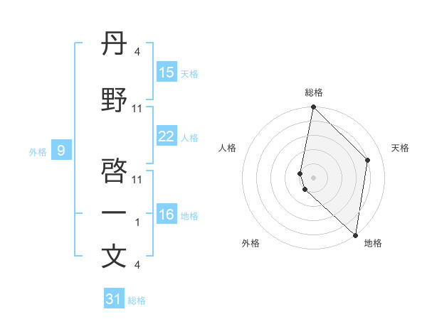 丹野 啓一文さんを姓名の画数から五運を鑑定