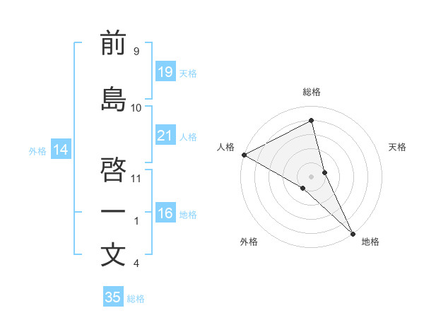 前島 啓一文さんを姓名の画数から五運を鑑定