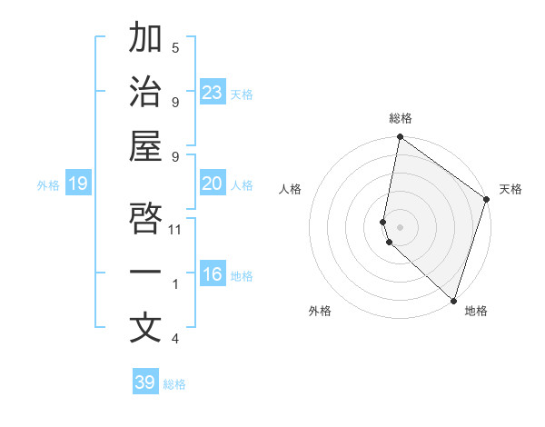 加治屋 啓一文さんを姓名の画数から五運を鑑定