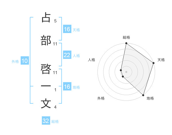 占部 啓一文さんを姓名の画数から五運を鑑定
