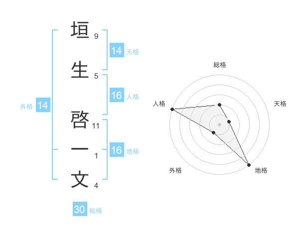 垣生 啓一文さんを姓名の画数から五運を鑑定