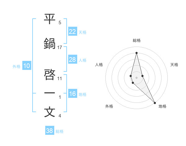 平鍋 啓一文さんの総格は38画の4点!