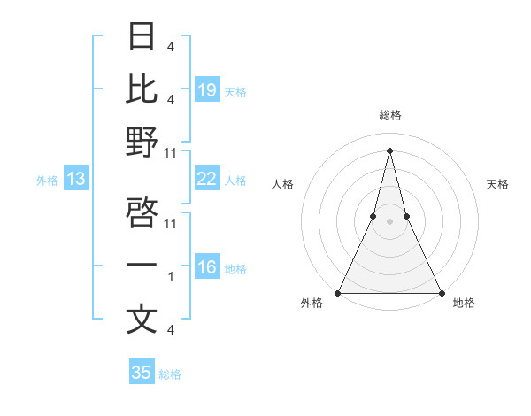 日比野 啓一文さんを姓名の画数から五運を鑑定