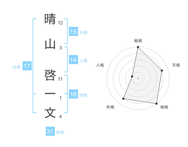 晴山 啓一文さんの総格は31画の5点!