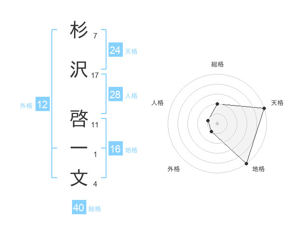 杉沢 啓一文さんの総格は40画の2点!