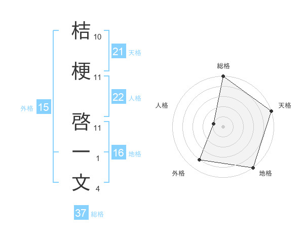 桔梗 啓一文さんを姓名の画数から五運を鑑定