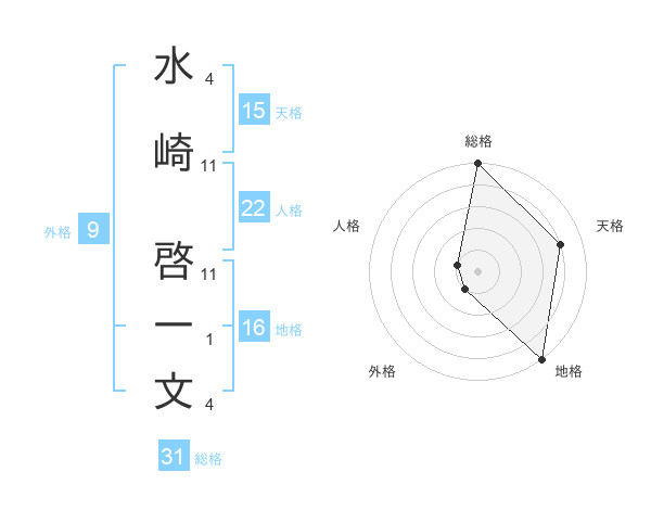 水崎 啓一文さんを姓名の画数から五運を鑑定