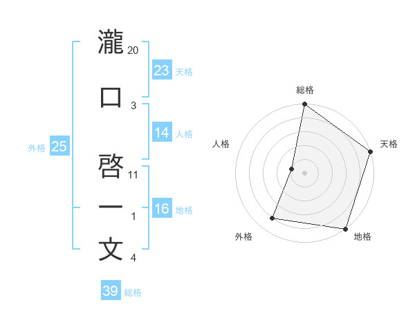 瀧口 啓一文さんを姓名の画数から五運を鑑定