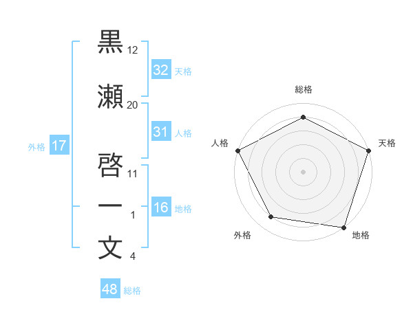 黒瀬 啓一文さんの天格は32画の5点!