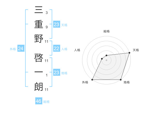 三重野 啓一朗さんの総格は46画の1点!