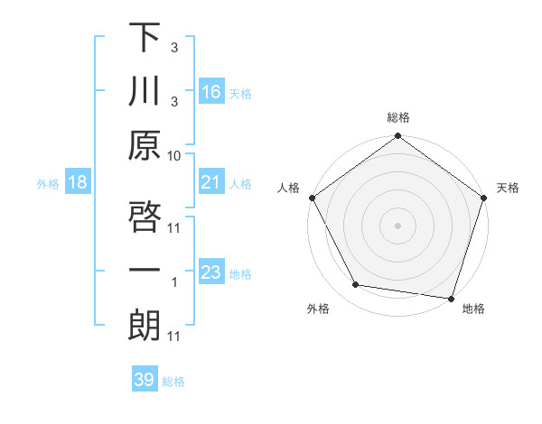 下川原 啓一朗さんを姓名の画数から五運を鑑定