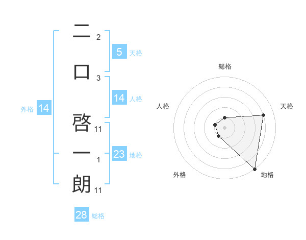 二口 啓一朗さんを姓名の画数から五運を鑑定