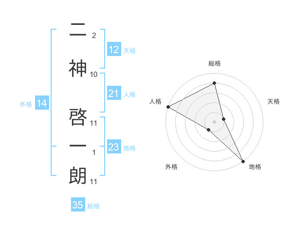 二神 啓一朗さんを姓名の画数から五運を鑑定
