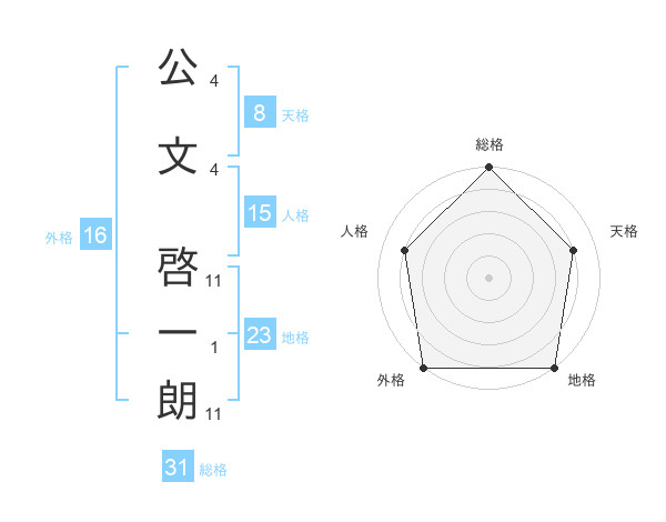 公文 啓一朗さんの総格は31画の5点!