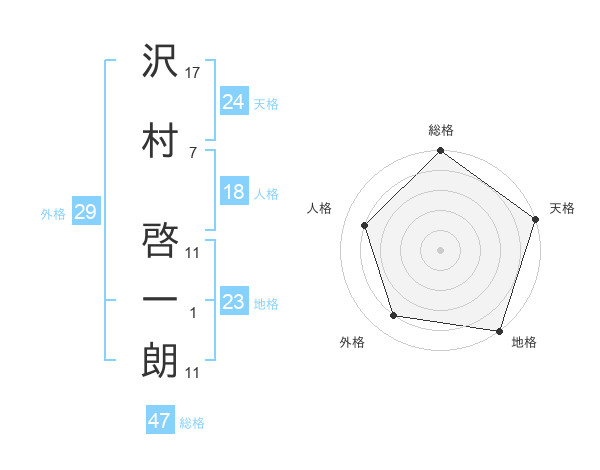 沢村 啓一朗さんの総格は47画の5点!