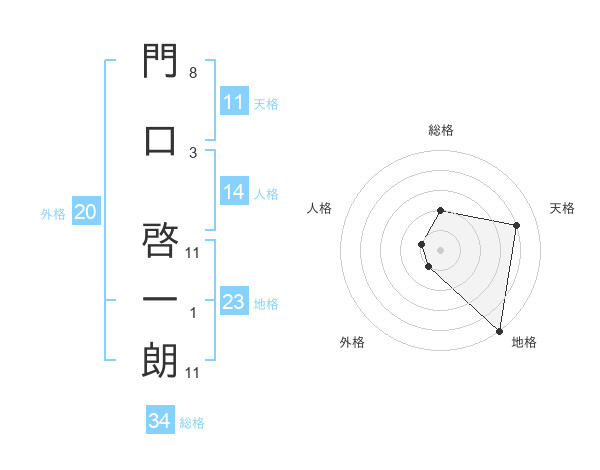門口 啓一朗さんの総格は34画の2点!
