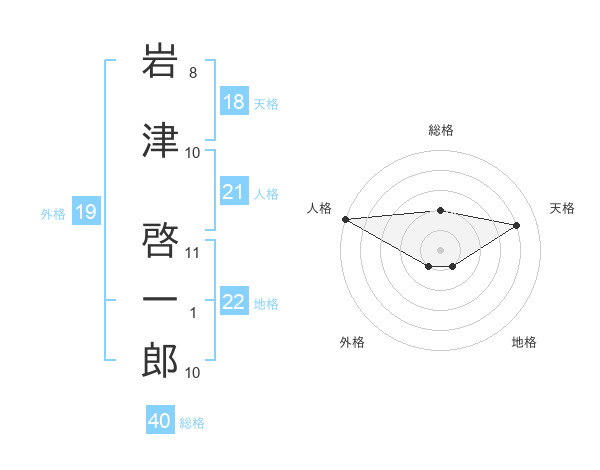 岩津 啓一郎さんの地格は22画の1点!