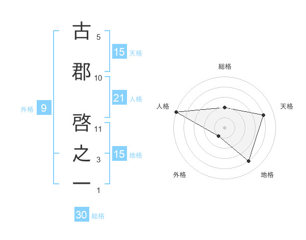 古郡 啓之一さんの地格は15画の4点!