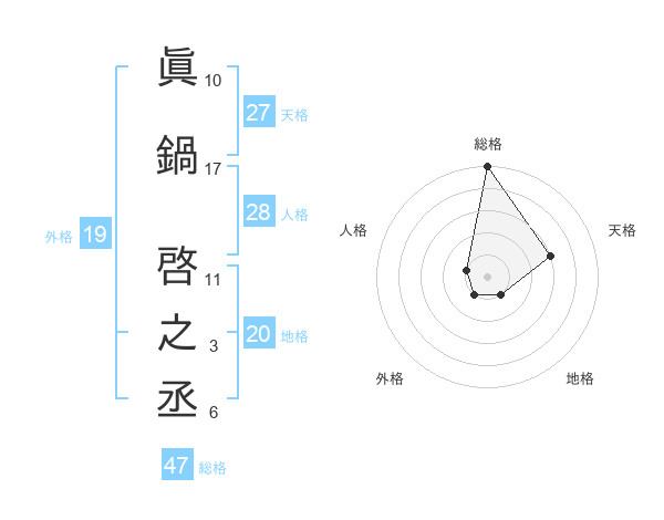 眞鍋 啓之丞さんを姓名の画数から五運を鑑定