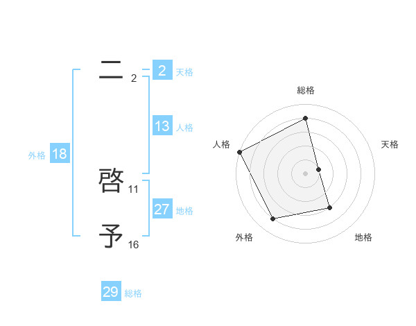 二 啓予さんの総格は29画の4点!
