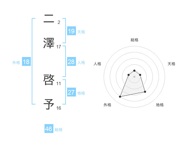 二澤 啓予さんを姓名の画数から五運を鑑定