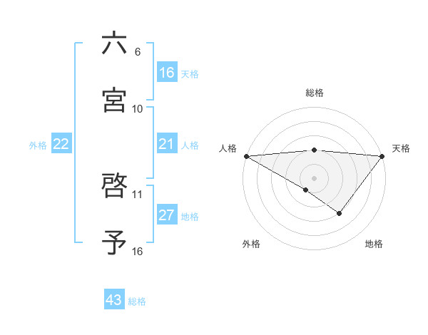 六宮 啓予さんを姓名の画数から五運を鑑定