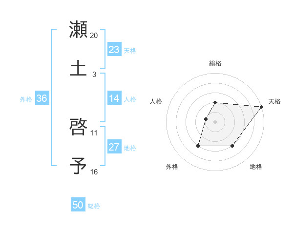 瀬土 啓予さんの天格は23画の5点!