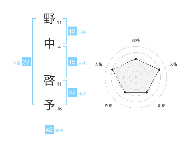 野中 啓予さんを姓名の画数から五運を鑑定