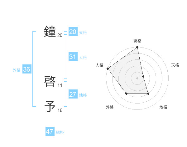鐘 啓予さんを姓名の画数から五運を鑑定