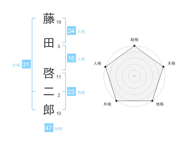 藤田 啓二郎さんを姓名の画数から五運を鑑定