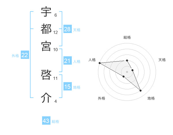 宇都宮 啓介さんを姓名の画数から五運を鑑定