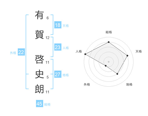 有賀 啓史朗さんを姓名の画数から五運を鑑定