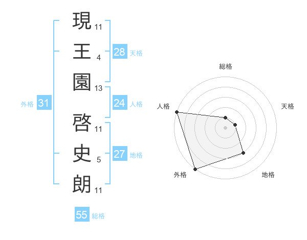 現王園 啓史朗さんの外格は31画の5点!