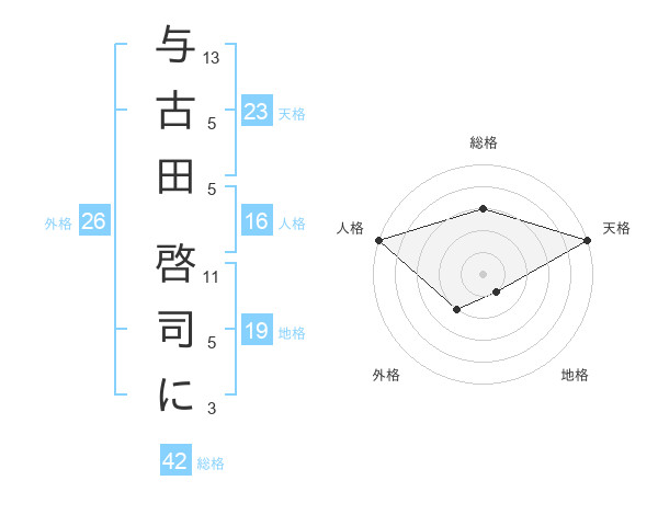 与古田 啓司にさんを姓名の画数から五運を鑑定
