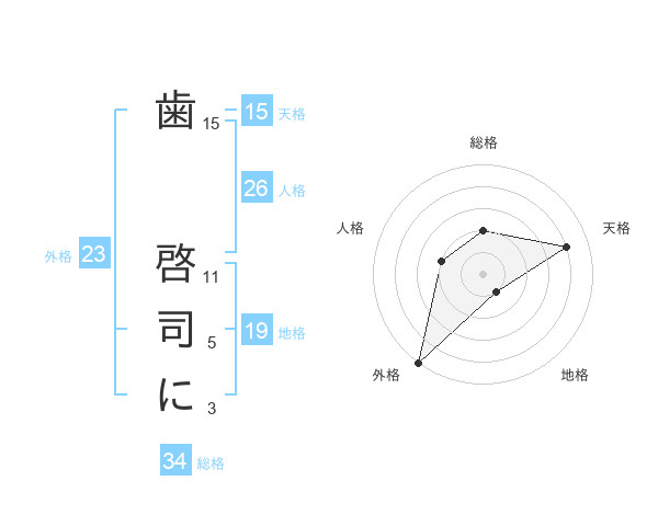 歯 啓司にさんの外格は23画の5点!