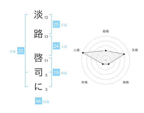 淡路 啓司にさんを姓名の画数から五運を鑑定