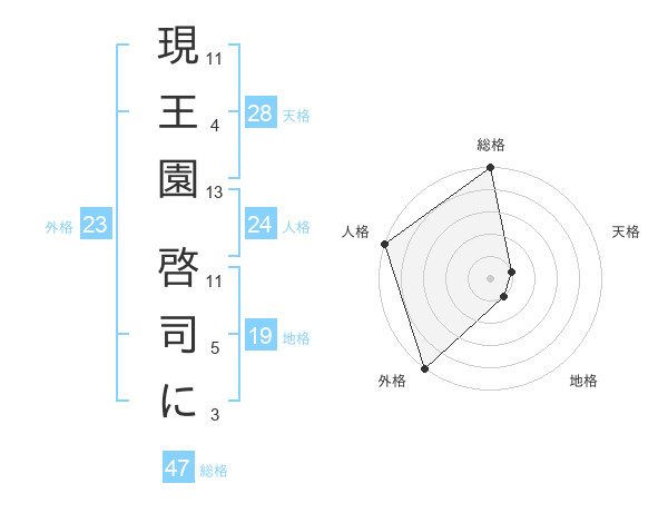 現王園 啓司にさんを姓名の画数から五運を鑑定