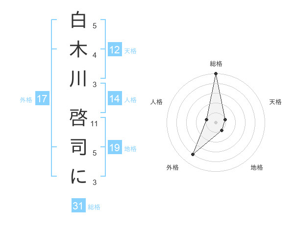 白木川 啓司にさんを姓名の画数から五運を鑑定