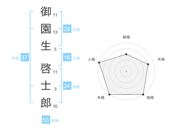 御園生 啓士郎さんを姓名の画数から五運を鑑定