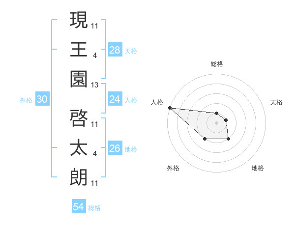 現王園 啓太朗さんを姓名の画数から五運を鑑定