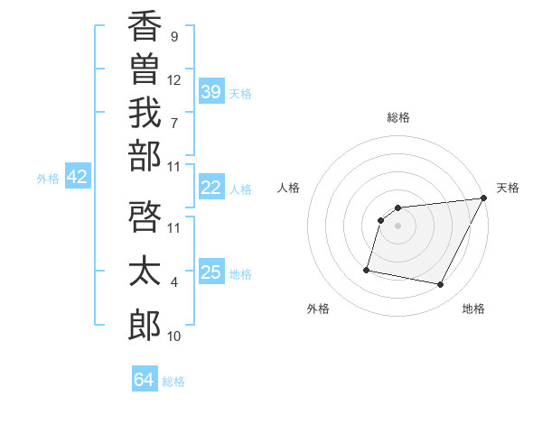 香曽我部 啓太郎さんの総格は64画の1点!