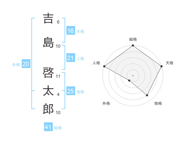 吉島 啓太郎さんの天格は16画の5点!