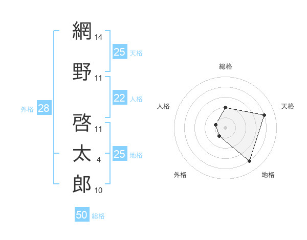 網野 啓太郎さんを姓名の画数から五運を鑑定