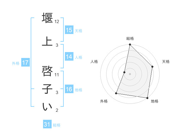 堰上 啓子いさんの総格は31画の5点!