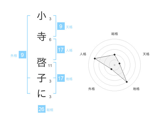 小寺 啓子にさんを姓名の画数から五運を鑑定
