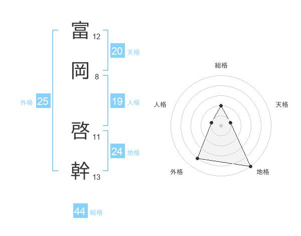 富岡 啓幹さんを姓名の画数から五運を鑑定