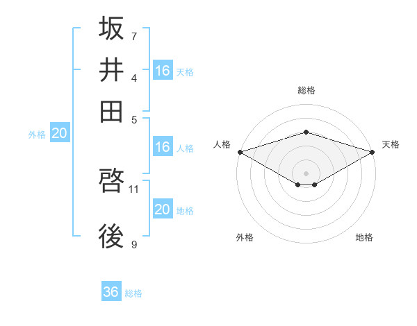 坂井田 啓後さんを姓名の画数から五運を鑑定
