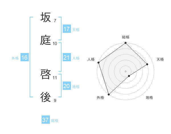 坂庭 啓後さんの総格は37画の5点!