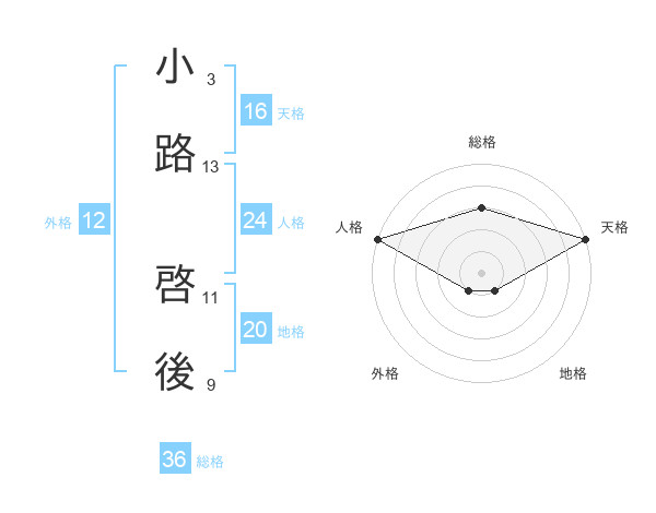 小路 啓後さんの天格は16画の5点!