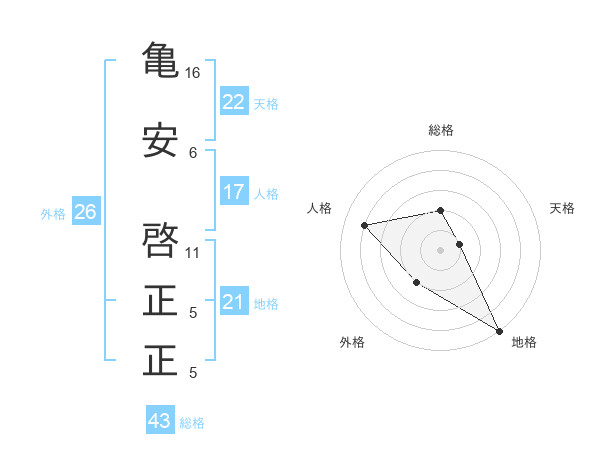 亀安 啓正正さんを姓名の画数から五運を鑑定